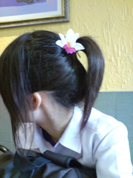 bububu,shouldn't have skipped pe today. :( had to attend dc and one demerit. :'( after detention went to jp, pierce ear with xt. :D after that jiu home,lalala. boring and sad school day. :( this girl wear SHORT DRESS,sit bic.*coughs*slut*coughs*