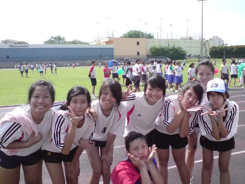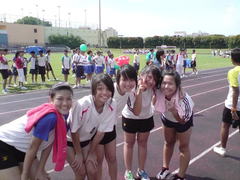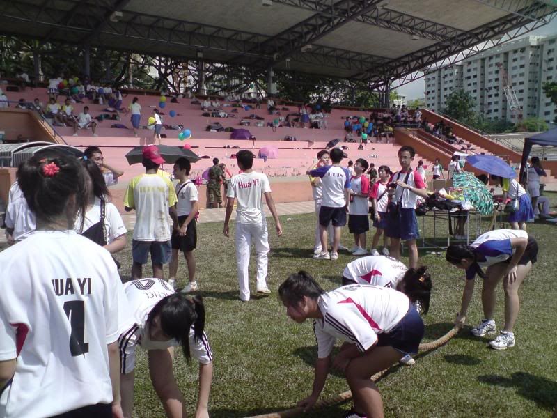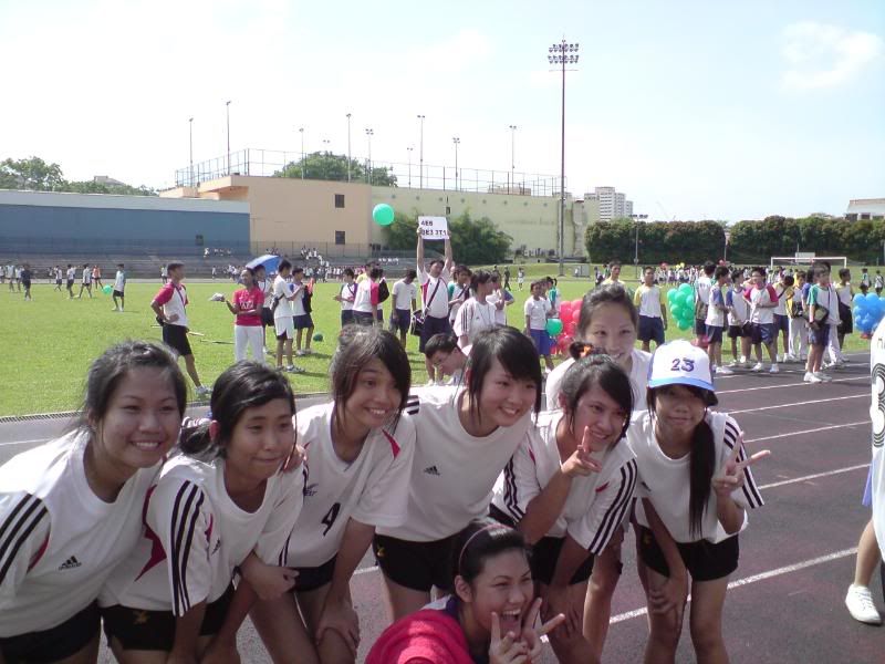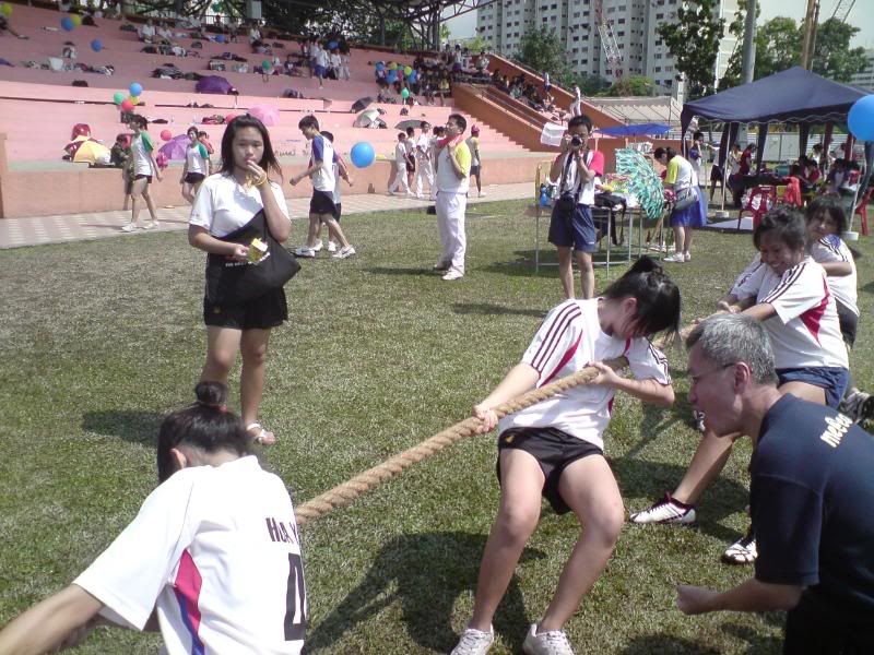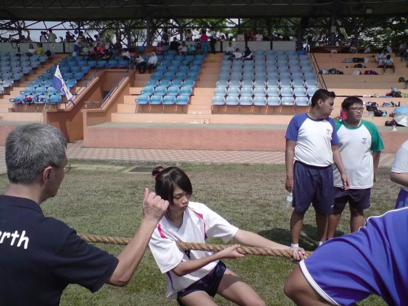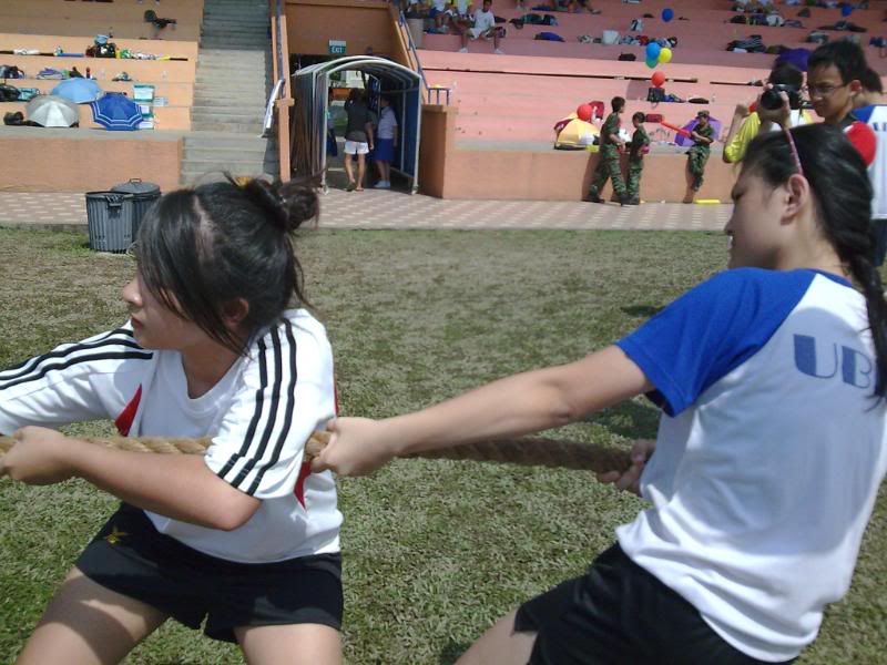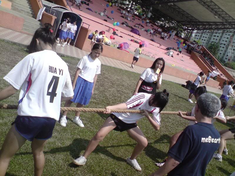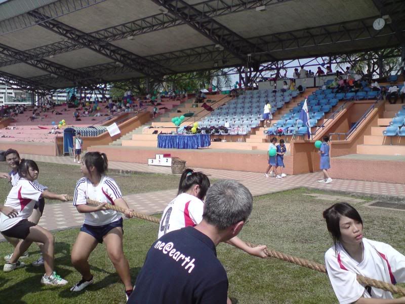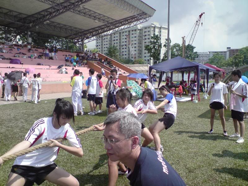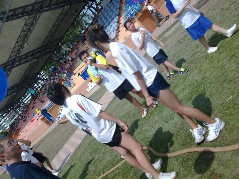 sports day was damn fun! 4x400m was challenging! we got 2nd,not bad not bad!:D i really tried my best at e CCA relay. there are some reasons due to why i was slower. but,nvm.take it as i'm slower then e rest. but i really tried my best,sry. at least we got third right?hah. tug o war was the fun of the day! during the finals finals,we lost e first round!:( but seond round we won it back!:D third round was suppery challenging! the ground was wet,i slipped. mud was all over my leg and my shirt too. but hey,good experience. when in e world would u let yourself down on mud? ;p our efforts paid off and we won!:D tug o war girls champion!weeeee!! & i should not mention how she scream at my dear alvin. was really pissed by that ok. -.- nice? ;D