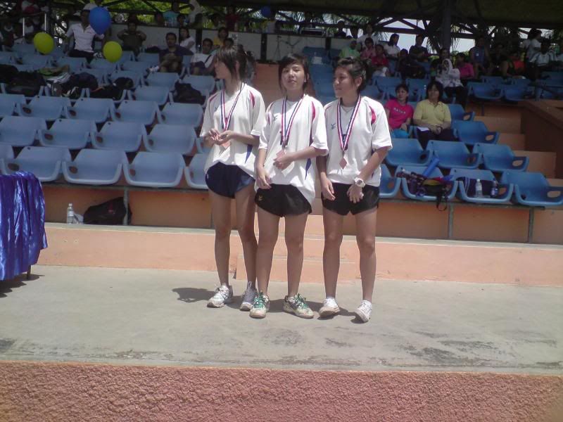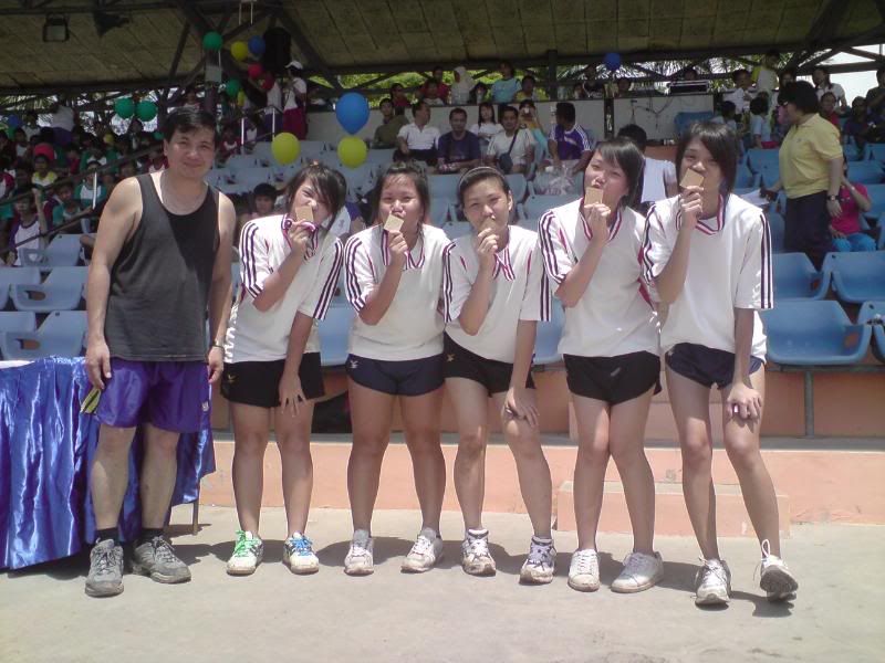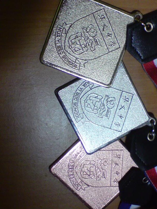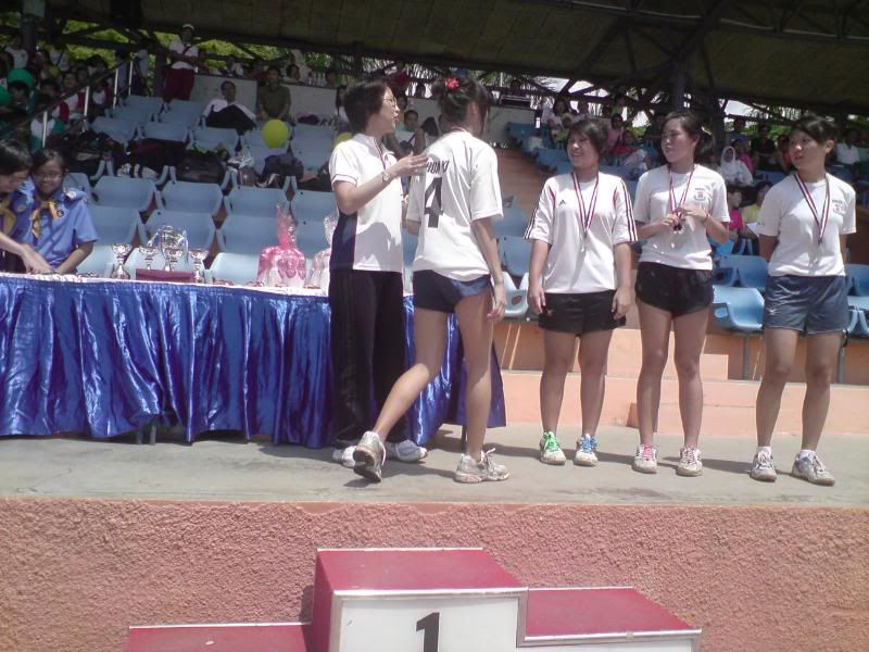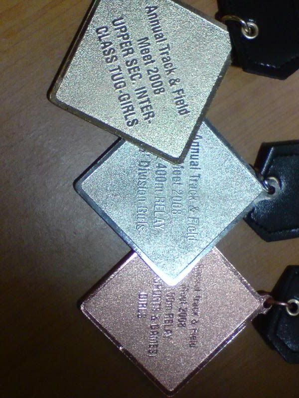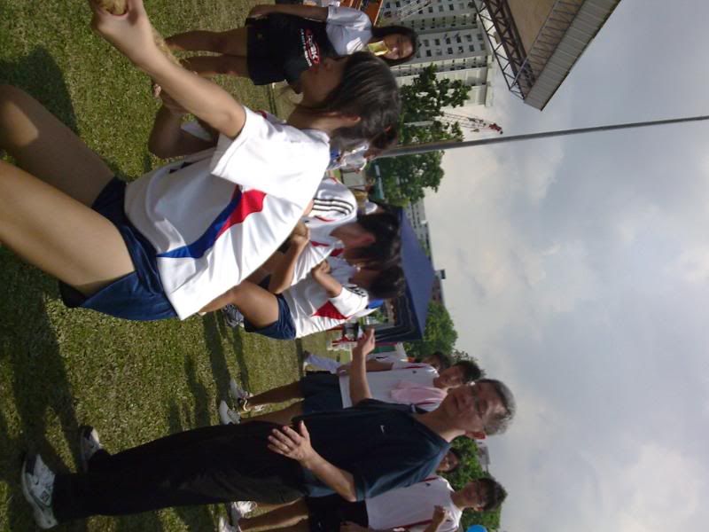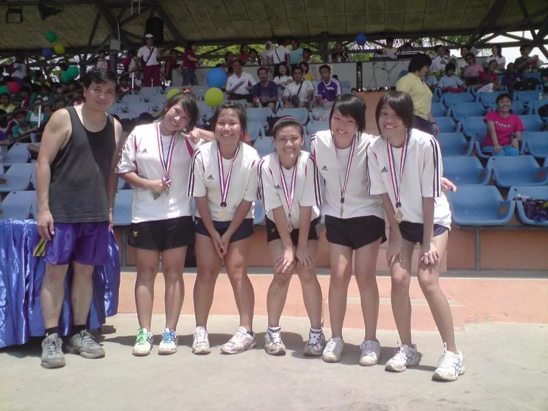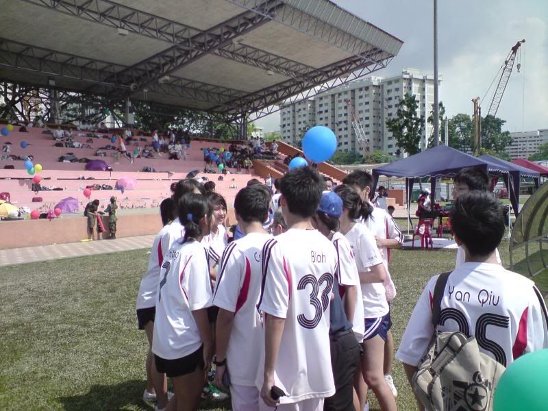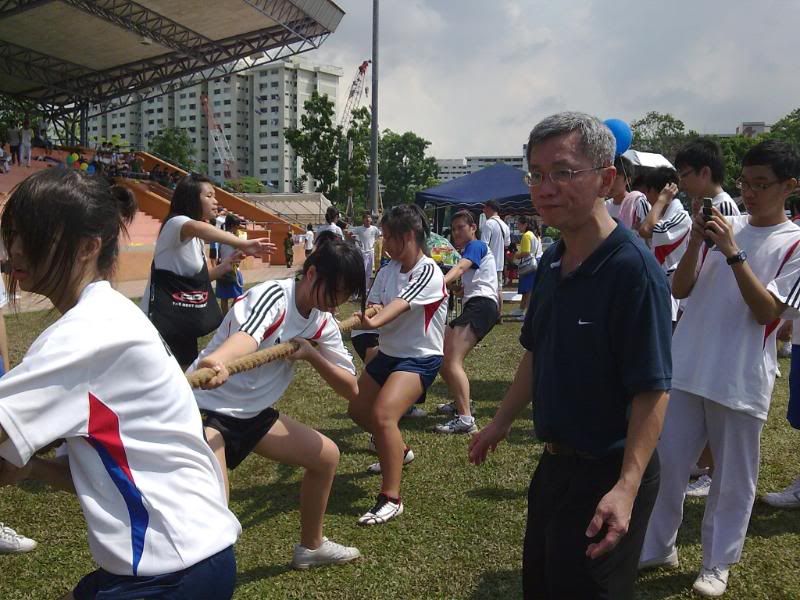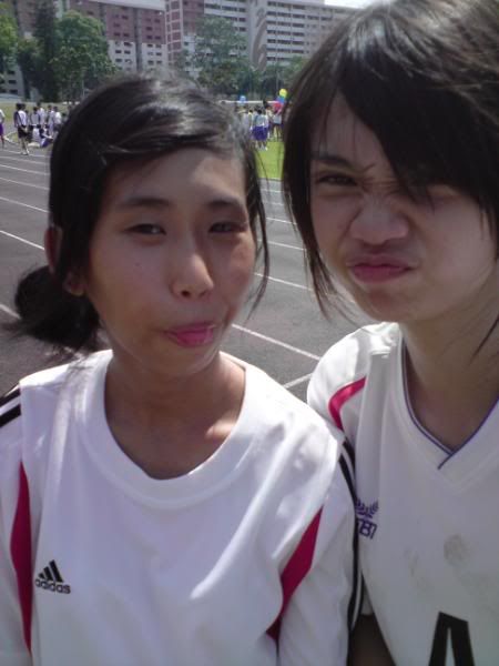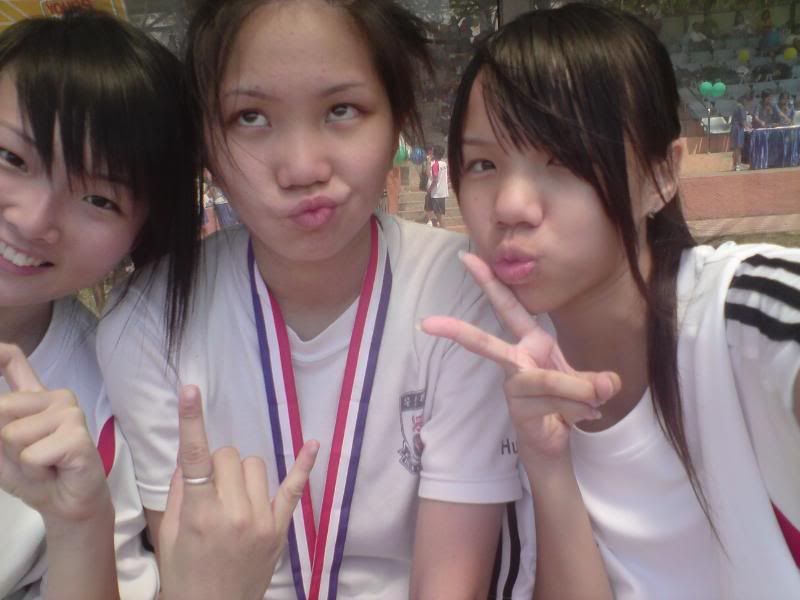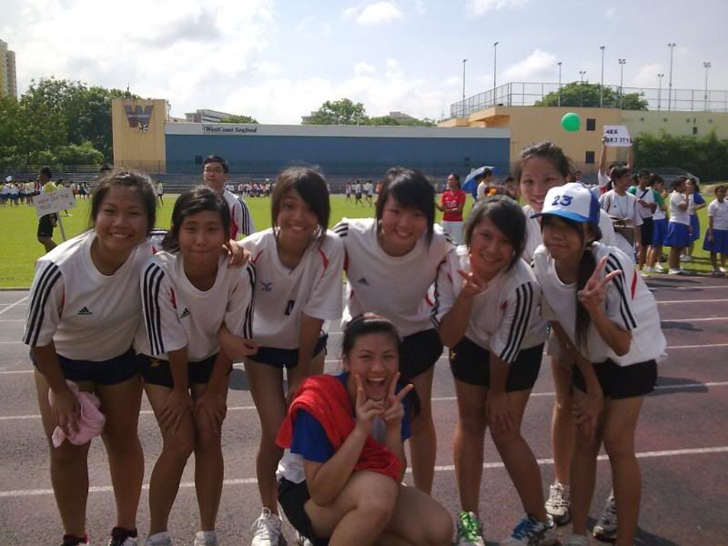 sports day was damn fun! 4x400m was challenging! we got 2nd,not bad not bad!:D i really tried my best at e CCA relay. there are some reasons due to why i was slower. but,nvm.take it as i'm slower then e rest. but i really tried my best,sry. at least we got third right?hah. tug o war was the fun of the day! during the finals finals,we lost e first round!:( but seond round we won it back!:D third round was suppery challenging! the ground was wet,i slipped. mud was all over my leg and my shirt too. but hey,good experience. when in e world would u let yourself down on mud? ;p our efforts paid off and we won!:D tug o war girls champion!weeeee!! & i should not mention how she scream at my dear alvin. was really pissed by that ok. -.- nice? ;D